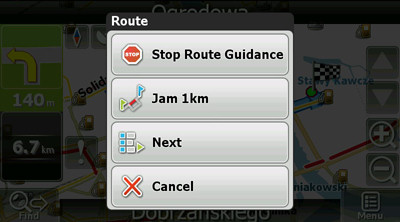 Der Navigationsapp-Nutzer kann nun auf einen Knopfdruck während der Fahrt eine Route oder einen Kreisverkehr für die Weiterfahrt sperren. Dies ist mit dem neuen Button Jam 1km möglich.
