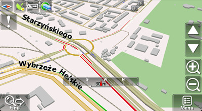 Manchmal ist es notwendig die Route mal aus einem anderen Blickwinkel zu betrachten. Dann hilft das neue Feature der rotierenden Ansicht. Indem man am unteren Bildschirmrand mit dem Finger zwischen den Menüpunkten Find und Menu wischt, wird die Karte in der Horizontalen gedreht.