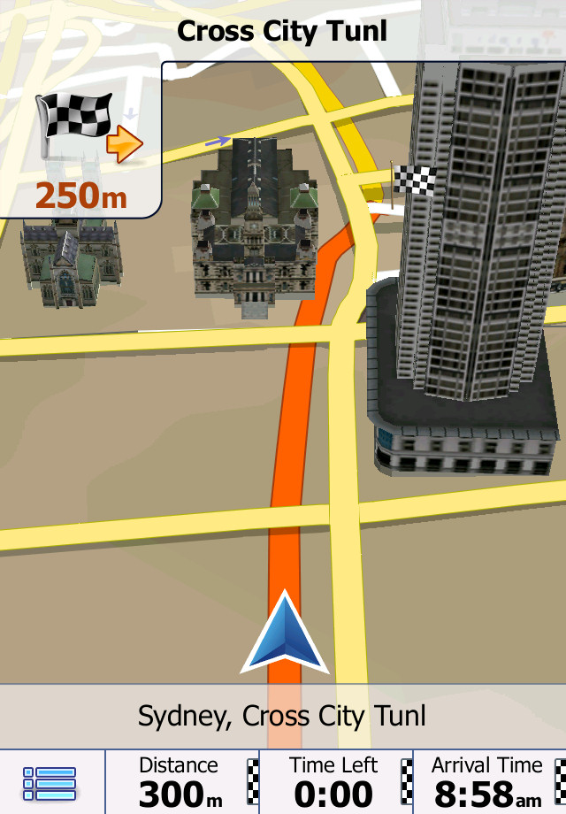 Eine normale Navigationsapp könnte man meinen, wäre da die eine spezielle Funktion nicht: Verbindet man das iPhone mit dem AppRadio wird die Navgate Drive Navigation auf dem großen Bildschirm „gespiegelt“ und die Fahranweisungen werden über die Autolautsprecher ausgegeben.