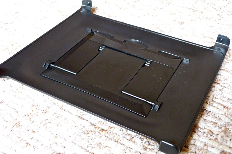 Zuerst reinigt man mit dem beiliegenden Tuch das Display des iPads und trägt die Schutzfolie auf. Danach entfernt man den Silikon-Skin vom Gehäuse, wodurch dieses mittels eines abnehmbaren Elementes geöffnet werden kann.