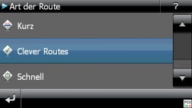Clever Routes, auch als Verkehrsflussdaten bezeichnet, sind historische Informationen über die Straßenbelastung an bestimmten Tagen und zu bestimmten Zeiten. Diese Informationen sind auf dem Navigationsgerät gespeichert.