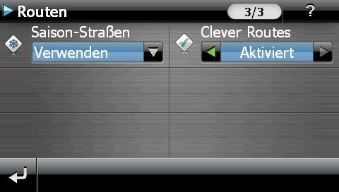 Nach der Installation sind die Clever Routes im Medion Gerät unter dem Menüpunkt der Routenoptionen verfügbar.
