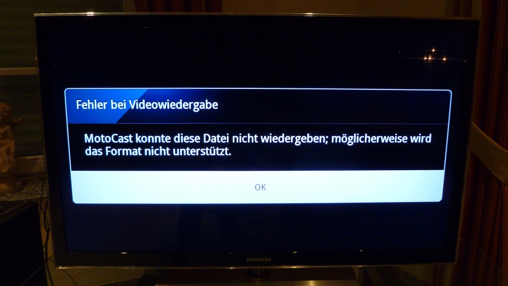 Doch selbst unseren WLAN-fähigen Fernseher sprach MotoCast an, wenn auch Format-Inkompatibilitäten auftraten.