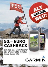 Beim Kauf eines neues Outdoor-Gerätes der Modellreihen GPSmap 62, GPSmap 78 und Montana erhalten Kunden im Tausch für ihr altes Garmin GPS-Handgerät 50 EUR. Zusätzlich werden auf das alte Gerät registrierte Karten im Rahmen der Aktion automatisch auf das neue Outdoor-Navi umgeschrieben.