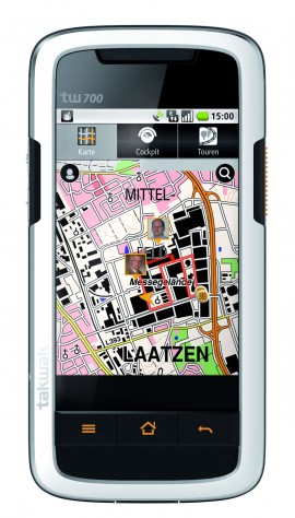 Das gegen Wasser und Staub unempfindliche tw700 basiert auf dem Android-Betriebssystem und kann als Walkie Talkie eingesetzt werden. So ist auch eine Kommunikation in Regionen und Telefonetz möglich. Eine weitere Besonderheit des tw700 ist eine Gruppennavigation, mit der mehrere Personen untereinander interagieren können.