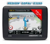 Das MEDION GoPal E3260 ist ab Donnerstag, den 29.03.2012, in allen ALDI Süd Geschäften für günstige 89,99 EUR mit einem Gutschein für ein einmaliges Kartenupdate (einlösbar innerhalb von 24 Monaten) erhältlich. Im Lieferumfang befinden sich eine DVD mit Karten und Software, eine Autohalterung mit Saugnapf, ein USB-Synchronisations-/Ladekabel und ein 12V/24V Autoladekabel mit integrierter TMC-Antenne.