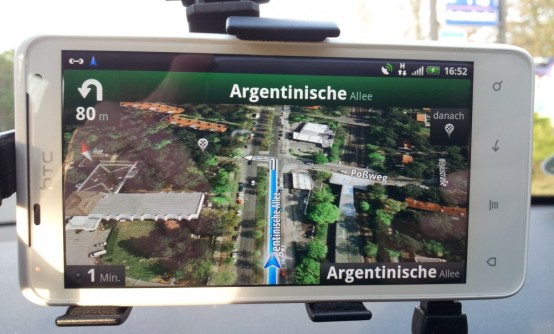 Das HTC Velocity 4G besitzt wie alle Android-Geräte die kostenfreie offboard Google Maps Navigation sowie das von HTC mitgelieferte, zur Premium Navigation aufgebohrte HTC Locations, „powered by Route 66„, das 30 Tage kostenlos evaluiert werden darf. Außerdem haben wir das HTC Velocity 4G mit drei weiteren kostenpflichtigen Navi-Apps getestet, die uns die Firmen freundlicherweise für Testzwecke zur Verfügung gestellt haben.