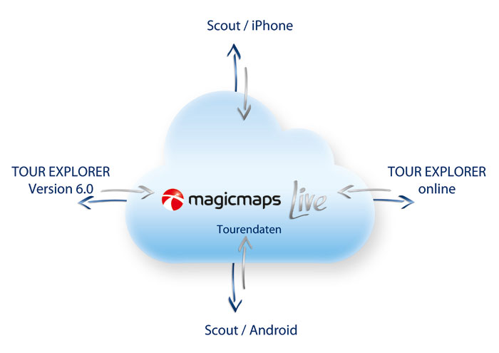 Der Tour Explorer Online und MagicMaps Live können ab sofort kostenlos genutzt werden. Nutzer des Tour Explorer müssen die Version 6.0 installiert haben und für Android-Smartphones ist die Scout App in der Version 1.2 Voraussetzung um die Online-Dienste nutzen zu können. Die kompatible iPhone App (Version 1.5.3) soll in Kürze im App Store zur Verfügung stehen.