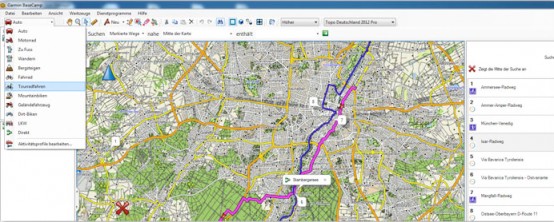 Sowohl die Topo Deutschland 2012 Pro als auch die TransAlpine 2012 enthalten mehrere tausend Kilometer an Rad- und Wanderwegen, die speziell markiert und so direkt in der Kartenansicht ersichtlich sind. Diese können auch bevorzugt in die ActiveRouting Navigation mit einbezogen werden.