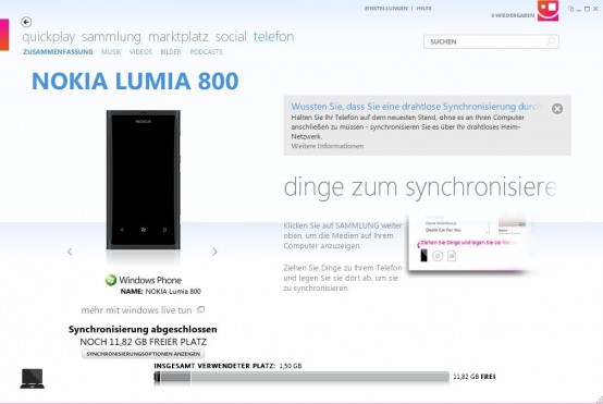 Zum heutigen Stand der Technik möchte man egal wo, egal wie und egal wann erreichbar sein und Daten möglichst schnell und einfach austauschen. Nokia macht es dem Nutzer nicht einfach mit dem geschlossenen Betriebssystem von Microsoft. Der Austausch von Daten klappt meist nur mit einer direkten Kabelverbindung. Man hat zwar mittlerweile die Möglichkeit, die Daten mit dem Heimrechner über WLAN auszutauschen, das klappt aber leider nicht immer ohne Probleme. In unserem Test brauchten wir einige Versuche und mussten diverse Einstellungen vornehmen bis eine Verbindung zu Stande kam.