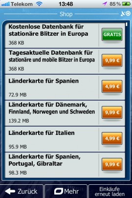 Allerdings müssen die zugekauften mobilen Blitzer taglich „von Hand“ aktualisiert, sprich neu runtergeladen werden. Andere Programme machen das automatisch mehrfach am Tag. Ausserdem ist mir aufgefallen, dass unmengen inaktive mobile Blitzer in der Karte angezeigt werden und somit unnötig mit Warntönen während der Fahrt nerven.