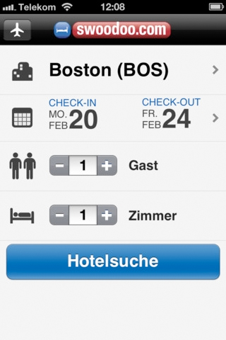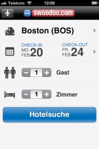 Ab hier kann ein Smartphone schon Gold wert sein. Die gratis iOS App Swoodoo findet nicht nur den günstigsten Flug für Euch, sondern auch noch eine Unterkunft. Die App kommt, wie der eigentliche Name schon verrät, von der Swoodoo Ag, ein Internet-Suchportal rund um Reise und Unterkunft.