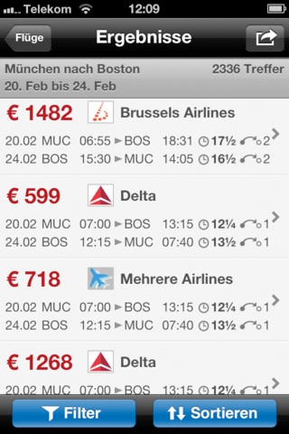 Skyscanner ist eine Alternative für iOS. Diese App gibt es ebenfalls für Android und Windows Phone, beherrscht aber lediglich die Suche nach dem günstigsten Flug. Allerdings leistet Skyscanner eine wirklich tolle Arbeit und ist mit 4,5 von 5 möglichen Sternen im App Store am besten bewertet worden.