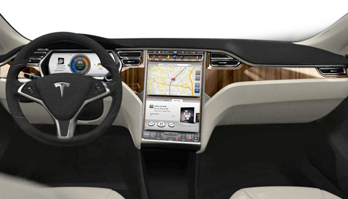 Für die Steuerung der Navigations- und Entertainmentfunktionen steht ein 17 Zoll großer Touchscreen bereit – das größte Display, das jemals in einem Auto verbaut wurde und die komplette Mittelkonsole des Fahrzeugs einnimmt. Über eine mobilen Internetverbindung ruft die Navi-Software aktuelle Verkehrsdaten, Sonderziele und einen Wetterservice ab. Zudem können auch Funktionen wie die Klimaanlage über das Display gesteuert werden.