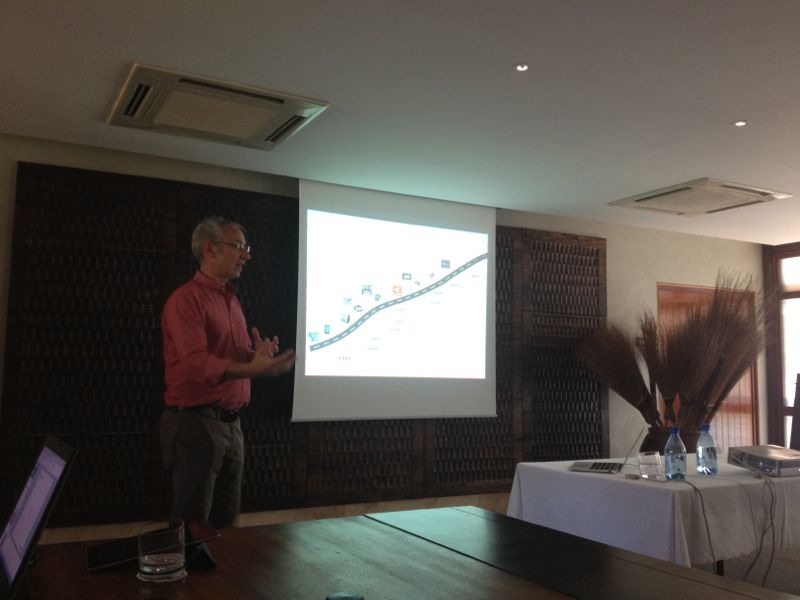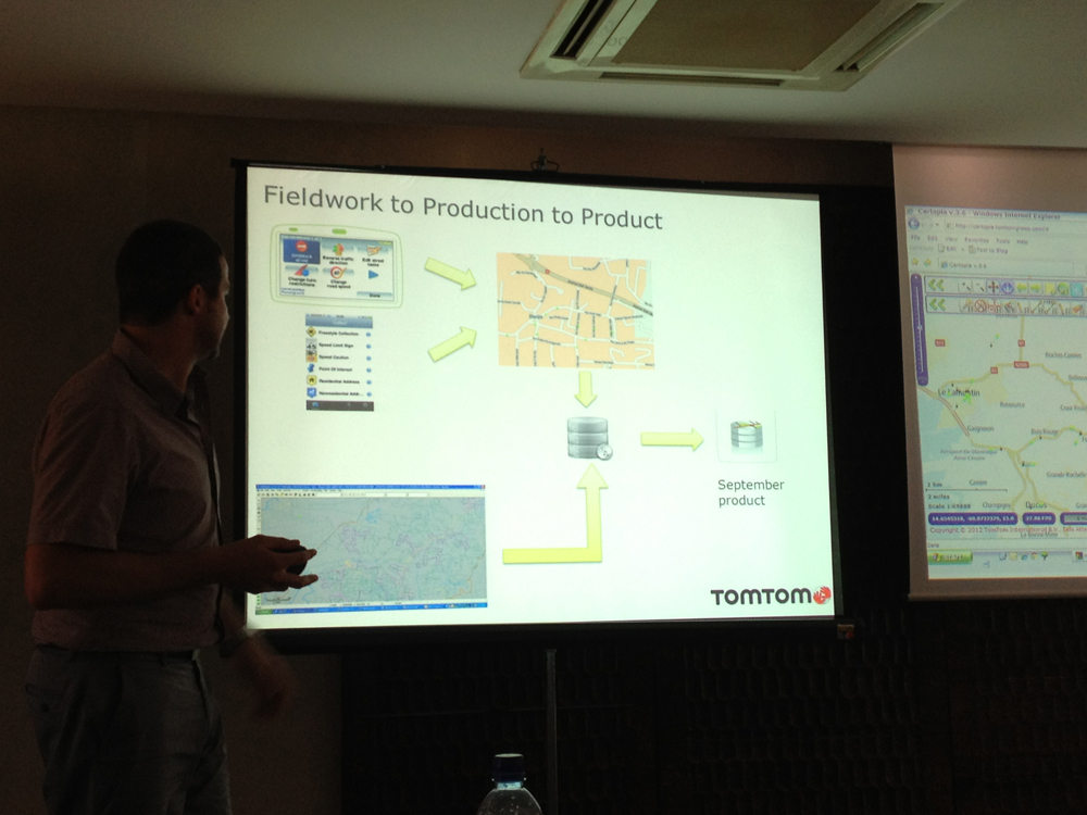 Tag 2 beginnt mit einem – wie soll es auch anders sein – exzellenten Frühstück. Gut gestärkt folgt eine Rede von TomTom Gründungsmitglied Peter Frans Pauweis über die Geschichte seines Unternehmens in der er immer wieder betont, dass Karten die Grundlage aller TomTom Dienste seien und führt damit in den nächsten Vortrag von Yves Muyseen (Leiter des globlen Map Unit Product Management Teams) über. Dieser gibt einen kurzen Überblick darüber gibt, wie eine Karte entsteht und zeigt in welcher frühen Phase der Erfassung Martinique aktuell noch steckt. Es existiert zwar aktuell eine Basiskarte in der das Straßennetz zum größten Teiler erfasst ist, allerdings fehlen wichtige Angaben wie Hausnummern, Geschwindigkeitsbeschränkungen, Abbiegeverbote und Einbahnstraßen mit denen eine Karte erst verlässlich zur Navigation genutzt werden kann. In den darauf folgenden Workshops wurde genauer auf IQ Routes eingegangen und wir konnten einen Blick auf den TomTom Traffic Server werfen, der detaillierte Informationen zur aktuellen Verkehrslage auf abgedeckten Straßen liefert. Eine ähnliche Vorführung hatte ich allerdings bereits zur Eröffnung des HD Traffic Centers in Berlin mitverfolgen dürfen.
