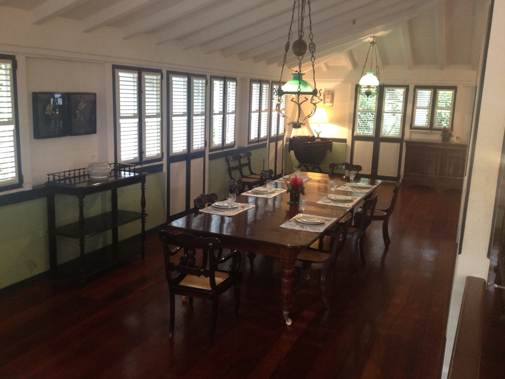 Der Abend hielt dann wieder eine Überraschung bereit und wir wurden mit zwei Booten zu einer kleinen Insel gefahren. Auf dieser gab es zwar keine Straßen zu vermessen, allerdings wurde uns ein drei gängiges Menü serviert. Das Besondere an dieser Insel war, dass hier ein fast zweihundert Jahre altes Haus steht, das damals bei einer Pokerrunde gewonnen wurde, jedoch erst von einer anderen Insel abgebaut und zu seinem neuen Standort transportiert werden musste. Heute lebt eine einzelne Person in diesem Haus, die dank einer Solaranlage, Wasserreserven aus Regenzeiten und Lebensmitteln die ihm die Natur zur Verfügung stellt, fast ohne andere Ressourcen auskommen kann. Wer weiß, das Martinique nicht nur durch seine Vulkane, Bananenplantagen sowie das schöne Wetter bekannt ist, sondern auch wegen seinem guten Rum einen guten Ruf besitzt, kann sich denken wie der Abend hier zu Ende ging…
