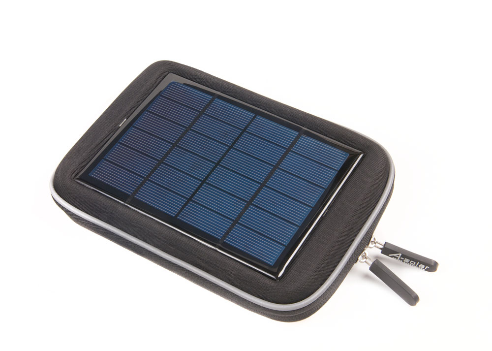 Die AB-203 misst 22 x 16 x 2 cm und bringt ein Gewicht von 350 g auf die Waage. A-Solar legt der Tasche ebenfalls diverse Adapter bei, damit Smartphone, Tablets und Navis mit Strom versorgt werden können. Die AB-203 kostet 69 EUR.
