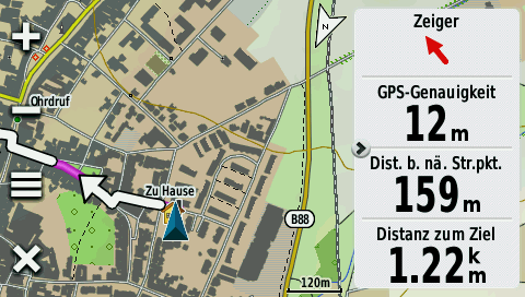 Die Zeiten in denen GPS-Geräte mit nur einer Technik zur Positionsbestimmung aufwarten, sind längst vorbei. So unterstützt das Garmin Montana 650t eine schnelle Positionsbestimmung via Hotfix, ebenso wie WAAS/EGNOS zur Verbesserung der Positionsgenauigkeit in Nordamerika und Europa. Aber was ist mit GLONASS? Bekannt aus der neuen etrex-Serie fehlt diese Option beim Garmin Montana 650t! Wohl gemerkt, im direkten Vergleich mit dem etrex 30 waren in den meisten Fällen keine nennenswerte Unterschiede in Sachen GPS-Genauigkeit erkennbar. Vielleicht ein Grund auf GLONASS zu verzichten? Bleibt natürlich zu erwähnen, das es während der gesamten Nutzung nur innerhalb von Gebäuden zu GPS-Abrisssen gekommen ist. Wieder unter freiem Himmel nahm das Garmin Montana 650t umgehend seine Arbeit auf. Der Wert der besten GPS-Genauigkeit lag im Test bei 3m. Sollte das Garmin Montana 650t in einem Fahrzeug genutzt werden, kann dank vorhandener Anschlussmöglichkeit eine externe GPS-Antenne verwendet werden.