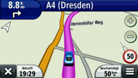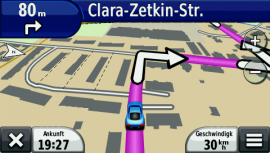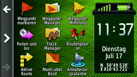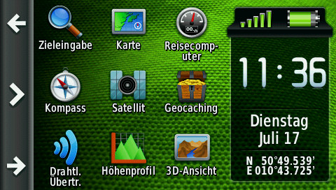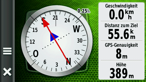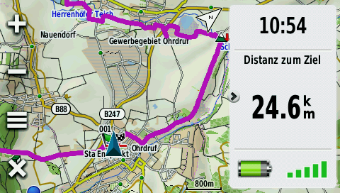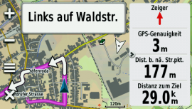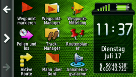 Der Clou, unter Verwendung der Garmin Kfz-Halterung mit eingebautem Lautsprecher, sowie einer routingfähigen Karte, wie beispielsweise des City Navigator® Europe NT oder der Topo Deutschland 2012 Pro, verwandelt man das Garmin Montana 650t zum vollwertigen Straßennavigationsgerät samt Sprachführung. Auch das Design der Navigationansicht kann dem der bekannten Nüvi-Serie angeglichen werden. Auf die Funktionalität der Garmin Kfz-Halterung werden wir zu einem späteren Zeitpunkt noch genauer eingehen.
