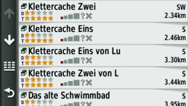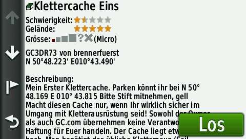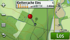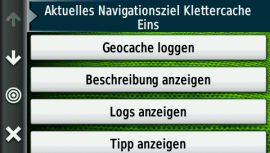 Die letztgenannten beiden Beispiele bekommen vor allem beim Geocaching eine gesonderte Bedeutung. Denn das Garmin Montana 650t beherzt auch das papierlose Cachen. So kann der Nutzer neben POIs, Adressen, Koordinaten, Wegpunkte, Routen und Tracks auch zuvor aufgeladene Geocaches als Navigationsziel auswählen. Hierbei stehen eine Vielzahl von Informationen zur Verfügung. Beispielsweise wird die Cachebeschreibung samt Wertung, Hinweise oder bereits getätigte Logs anderer User angezeigt. Gehobene Caches können als „gefunden“ markiert werden und später via Computer an geocaching.com per Field Note übertragen werden.