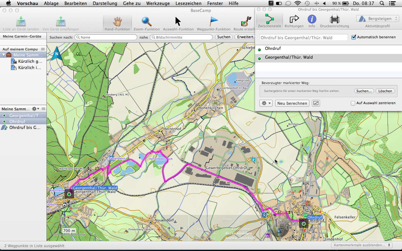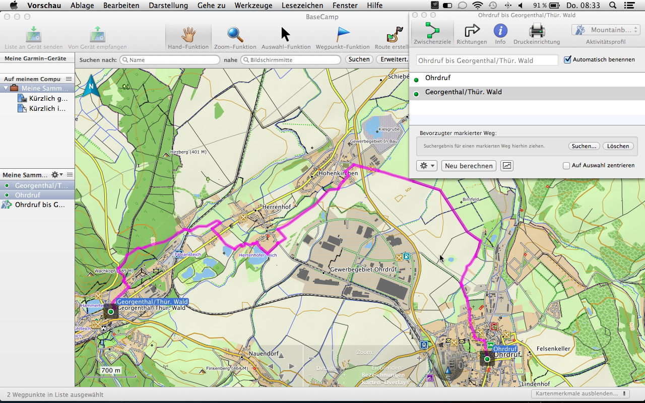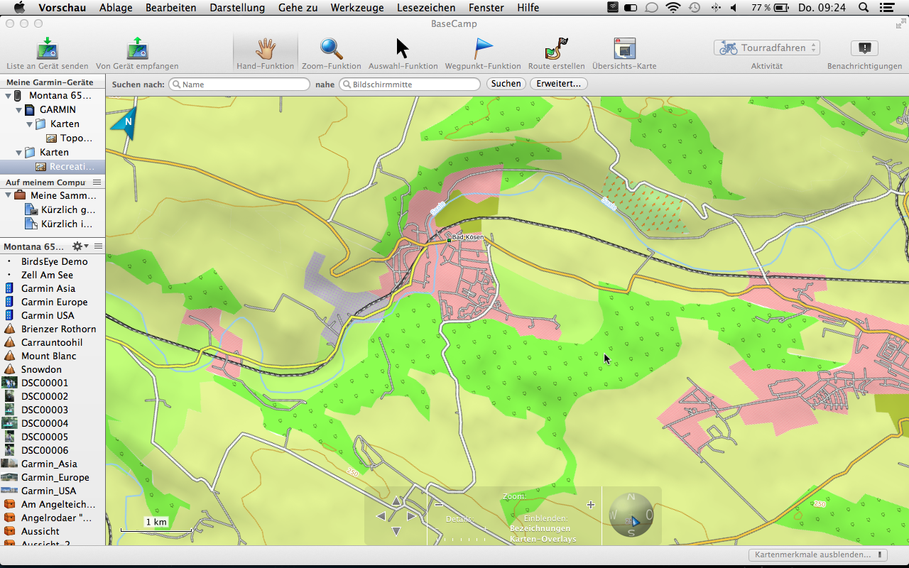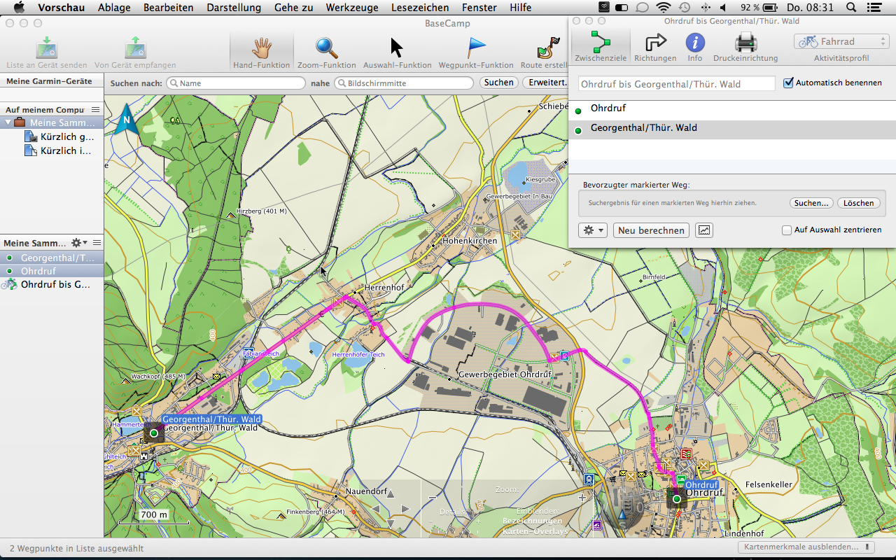 Mit der Tourenplanung kommen wir nun auch schon zum nächsten Abschnitt. Die Garmin Topo 2012 Pro beinhaltet 70.000 km Rad- und 30.000 km Wanderwege des ADFC und des DWV, sowie suchbare Ausflugsziele des Bett Bike Partner des ADFC. Diese Ziele können zum einem direkt über das Gerät (in unserem Fall der Garmin Montana 650t) oder auch über die PC-Software Garmin BaseCamp gesucht und ausgewählt werden. Letztere Möglichkeit ist natürlich weitaus komfortabler und übersichtlicher gestaltet. So können bequem Informationen zu Länge, Verlauf und Höhenprofil eingesehen werden.