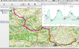 Neben den vorgeschlagenen Touren lassen sich natürlich auch eigene Routen planen welche anschließend an das entsprechende Endgerät übertragen werden können. Dies muss nicht zwangsläufig ein Garmin-Gerät sein. Beispielsweise ist es auch möglich, Touren zu einem Track zu konvertieren und diesen als GPX-Datei auf dem PC abzulegen. Dieser Track kann an andere Geräte übertragen und geöffnet werden. In unserem Test wurde so ein frei gewählter Track auf dem MEDION GoPal Outdoor Navigator für Android zur Anzeige gebracht. Garmin-spezifische Routingoptionen stehen hier natürlich nicht zur Verfügung, wohl aber Informationen zu Länge, Verlauf und Höhenprofil!
