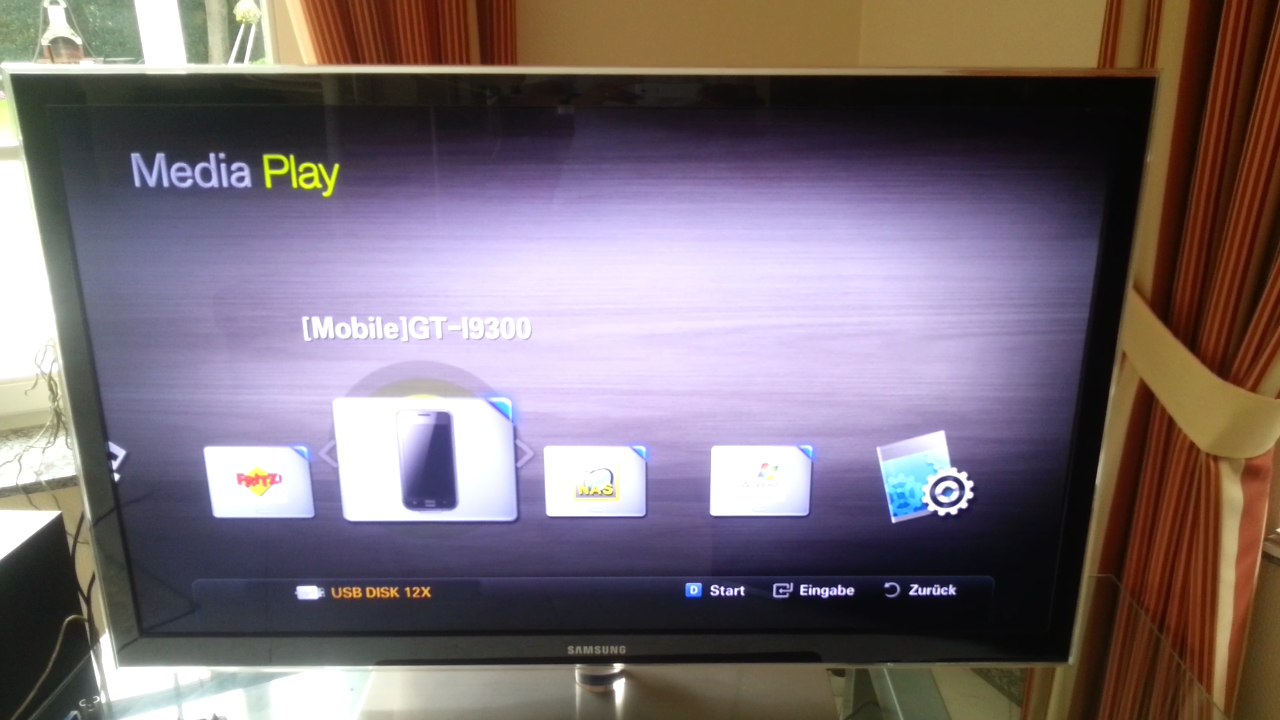 Die drahtgebundene Übertragung per MHL/HDMI konnten wir mangels Spezialadapter nicht testen; unser bisheriger Samsung-HDTV-Adapter blieb erwartungsgemäß wegen der unorthodoxen Pinbelegung der SGS3-MHL-Schnittstelle wirkungslos. Dagegen klappte drahtloses Video-Streaming per DLNA hervorragend. Dank großzügiger und netzangepasster Vorpufferung lief sogar HD-Streaming ohne Unterbrechungen. Nicht-Netzwerk-fähige TV-Geräte werden durch den (teuren) Samsung AllShare Cast Dongle fit gemacht.