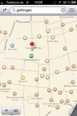 Vergangene Woche hat Apple die 6. Version seines mobilen Betriebssystems iOS inklusive einer neuen Karten App zur Verfügung gestellt. Im Netz häufen sich seitdem Beschwerden von Nutzern über das verwendete Kartenmaterial, sowie die teilweise sehr schlechte Qualität der 3D-Karten. Allerdings wird der Karten App dabei, in einigen Fällen sogar von Online-Ausgaben renommierter Zeitschriften, unrecht getan, die Vorwürfe, scheinbar ohne weitere Kontrolle, aus der Netzwelt zusammen sammeln und veröffentlichen.