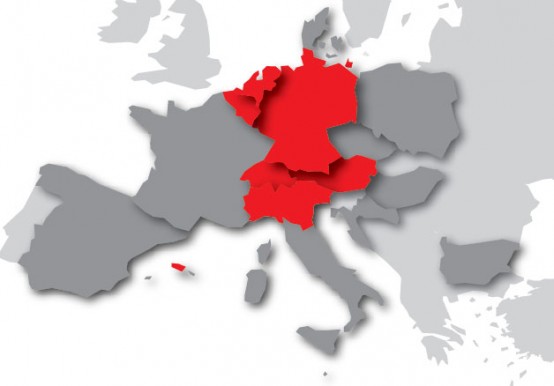 Mit den neuen Karten erhält der Kunde auch die neuen POI-Daten, zum Beispiel zahlreiche weitere Berghütten. In der Grafik sind die neuen Premiumkarten in rot, die OSM-Karten in dunkelgrau zu sehen.