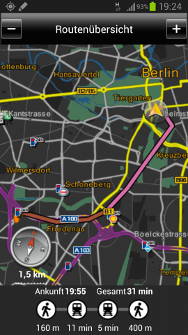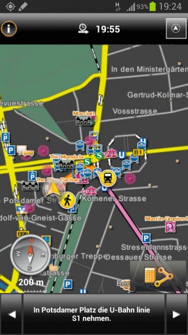 Wir haben auch dieses Mal die Navigationseigenschaften mit NAVIGON MobileNavigator für Android getestet. Die von NAVIGON zur Verfügung gestellte Vollversion 4.6 (während des Tests Update auf 4.6.1) beinhaltet als Neuerung Urban Guidance. Die In-App kombiniert die Fußgängernavigation mit den Fahrplänen öffentlicher Verkehrsmittel in Ballungsgebieten und schlägt sowohl für Android als auch iOS mit relativ moderaten 4,95 Euro zu Buche. Eine sehr nützliche Erweiterung gerade für Ortsfremde, auch wenn User noch von leichten Kinderkranheiten berichten.