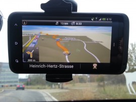 Auch mit Route 66 und dem passgenauen Panoramic Car Kit arbeitet das HTC One XL klaglos zusammen. Ohne auf weitere Navi-Apps zurückgreifen zu müssen, gilt trotz unterschiedlichen Innenlebens sowohl für das HTC One X als auch das HTC One XL, dass das GPS spontan anspricht, lagestabil und spurtreu ist. HTC-Eigenheiten wie HTC car mit HTC Locations (Premium Navigation) haben wir bereits an anderer Stelle beschrieben.