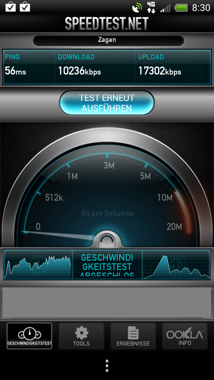 Das HTC One XL erzielt in seinem “Kerngeschäft” – mobiles Breitband-Internet 4G/LTE – respektable Download- und Uploadraten, wobei das stark schwankende Downloadverhalten im Vodafone-Netz Anlass zum Nachdenken gibt. Sollte es am LTE-Netzwerk liegen, ist Vodafone gefordert, ansonsten HTC bzw. der Chiphersteller Qualcomm.