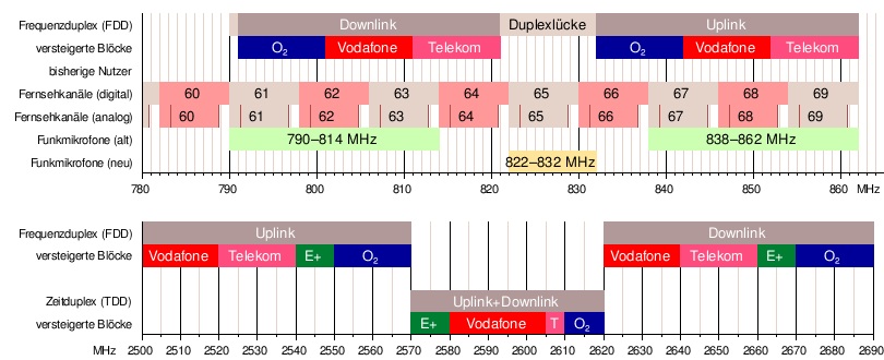 E-Plus hielt sich bisher mit LTE vornehm zurück, hat aber im September 2012 angekündigt, ein „gerechtes“, d.h. ein weitgehend Auslastungs-unabhängiges LTE-Netz im 1800 MHz-Bereich aufzubauen. Das ist neben 800 MHz (alte Analog-Fernsehfrequenzen) und 2600 MHz die dritte LTE-Frequenz in Deutschland. Wir erleben damit eine ähnliche Frequenz-Diversifizierung wie in Nordamerika (700 MHz, 2100 MHz, 850/1900 MHz und und T-Mobile USA neuerdings auch 1700 MHz – allerdings ein aufgeblähtes UMTS-Schein-4G), mit der die Geräte-Hersteller ihre liebe Note haben. So erklärt sich beispielsweise auch die Enttäuschung (nicht nur) über das neue iPhone 5, das neben US-LTE vorerst nur für das LTE-Netz der Deutschen Telekom (später auch E-Plus) taugt. LTE-Weltgeräte liegen – ähnlich dem Wirrwar bei GSM/CDMA und 3G-Frequenzen – in weiter Ferne, was vor allem „frequent travellers“ in einer globalisierten Welt nervt.