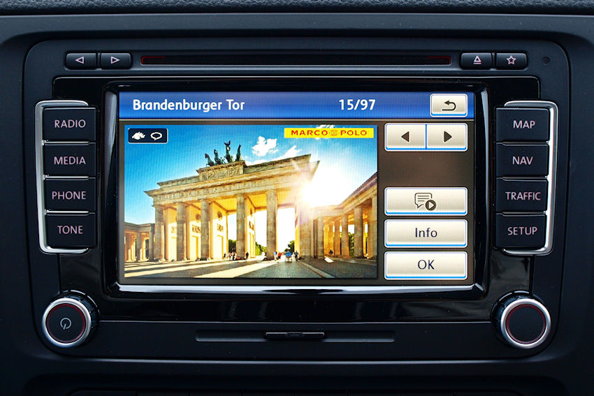 Auch mit POIbase werden die unterschiedlichsten Sonderziele auf gleich unkomplizierte Weise auf eine SD-Karte geladen und vom Speicherkartenleser des VW-Radio-Navigationssystems abgerufen. POIbase bietet ebenso Reiseführer für ganz Europa für die Festeinbauten RNS 510 und 810. Allerdings zeigen die POIbase Sonderziele für die RNS-Systeme keine Bilder an.