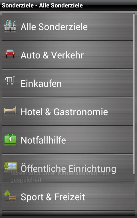 MEDION liefert bereits eine gute Auswahl an Sonderzielen aus den verschiedensten Themengebieten mit. Eine Funktion, um beispielsweise vor Blitzern zu warnen, ist in Planung. Eigene Sonderziele kann der Nutzer nicht speichern und auch eine Anbindung an die Zusatzsoftware POIbase, mit der weitere POIs hinzugefügt werden könnten, besteht nicht.