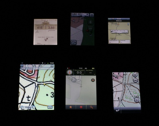 Dieses Bild wurde bei vollständiger Dunkelheit aufgenommen. Alle Displaybeleuchtungen wurden auf die maximale Helligkeit gestellt. Die Unterschiede sind riesig. Die Qualitätsunterschiede der Karten sind ebenfalls deutlich zu erkennen.