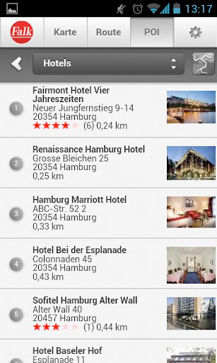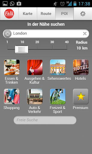 Falk Maps kennt bereits mehr als fünf Millionen Sonderziele aus den unterschiedlichsten Kategorien. Diese können als Routenziel übernommen oder über soziale Netzwerke wie Twitter geteilt werden.