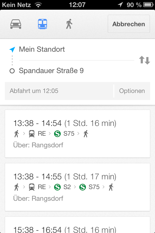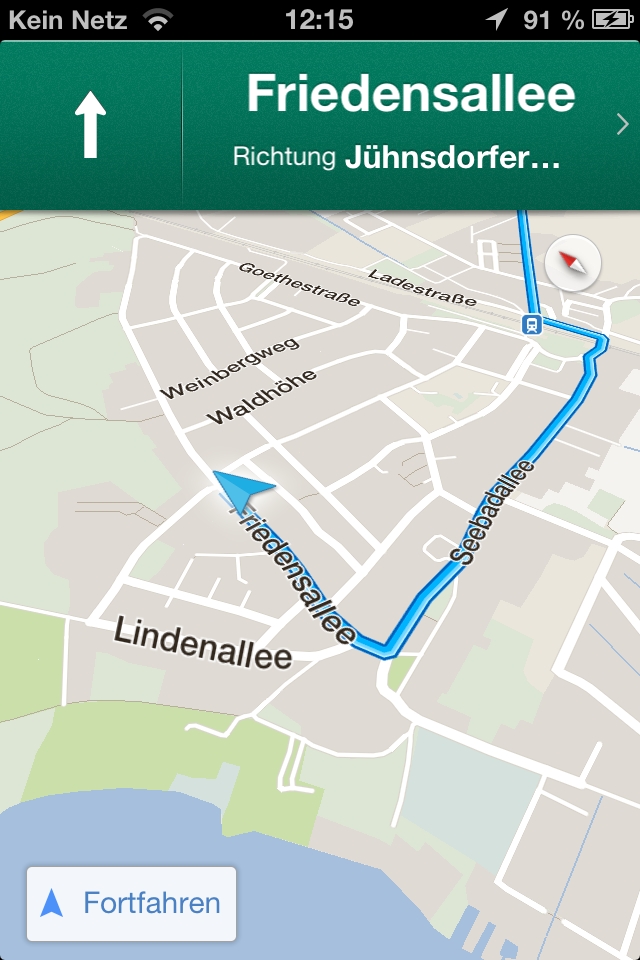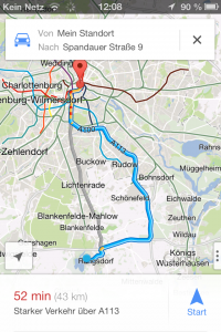 Bei der Rückkehr zu iOS hat es Google offenbar nicht ausgereicht, die alte Kartenanwendung zu recyceln. Google Maps wurde komplett überarbeitet und an die Funktionen der Apple Karten App angepasst. Neben der Suche nach Orten auf der Karte und der Anzeige einer Route ist jetzt auch eine echte Navigation mit Pfeilansicht und Sprachansagen möglich. Sogar eine Routenplanung unter Berücksichtigung der öffentlichen Verkehrsmittel bietet die neue Google Maps App. Google kommt Apple damit zuvor und macht die aktuell auf iOS Geräten vorinstallierte Karten App praktisch überflüssig.