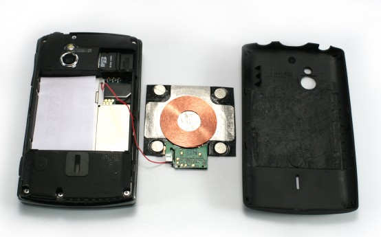 Damit die Spule unter das Cover passt, müssen die feinen Kunststoffstege im Backcover mit einer Fräse (oder einem Stechbeitel) entfernt werden. Das geht sehr einfach und schnell und schafft genug Platz für das induktive System.