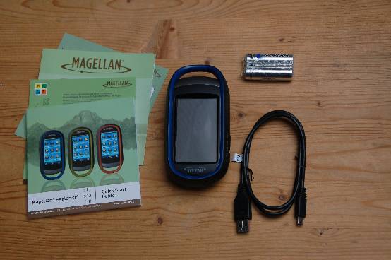 Navigationsgerät, Batterien, USB-Kabel, Handbuch: im Verpackungskarton des eXplorist findet sich die notwendige Grundausstattung um nach dem Auspacken sofort loszulegen. Der deutschsprachige Abschnitt des gedruckten Quick Start Guide umfasst knappe 17 Seiten. Das ist relativ kurz, doch andere Hersteller legen ihren Produkten überhaupt keine Druckerzeugnisse mehr bei. Zusätzlich sollte man sich aber von der Magellan-Website auf jeden Fall das ausführliche Handbuch im PDF-Format herunterladen.