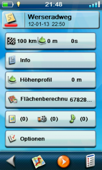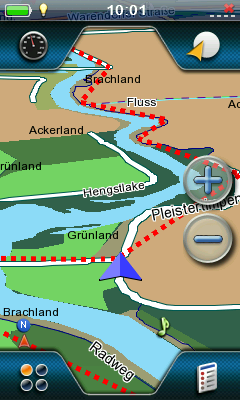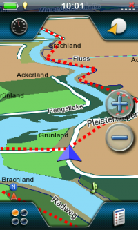 Aktives Routing kann bei Nutzung der topografischen Summit-Karte auf Grundlage von einzelnen Wegpunkten, Tracks, Routen, Geocaches oder verorteten Mediendateien (Foto, Video, Audio) erfolgen, wobei die Streckenführung in unserem Fall kartenabhängig stets gradlinig von Punkt zu Punkt verläuft.