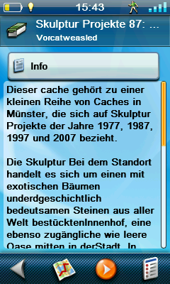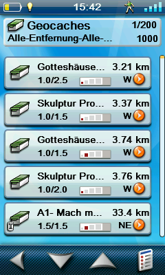 Nutzer mit Geocaching.com-Konto werden die gelungene Implementierung ihres Geocache-Anbieters in die Magellan-Software zu schätzen wissen, insbesondere wenn sie über einen Premium-Zugang verfügen. Der Zugriff auf Geocaches und das jeweils zugehörige Informationsangebot ist über die Navigationsoberfläche bequem möglich und stellt eine der besonderen Stärken des Geräts dar. Wem die „Nummer Eins“ in der Geocache-Welt nicht zusagt, kann bei Bedarf auch auf andere Ziele zurückgreifen, hier ist allerdings etwas mehr Engagement bei der Dateneinpflege gefragt.