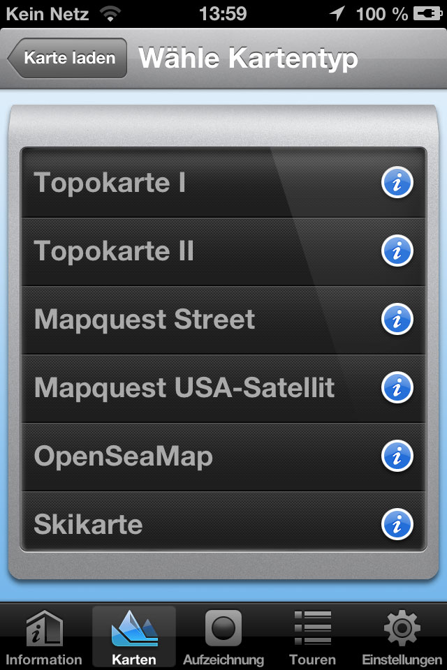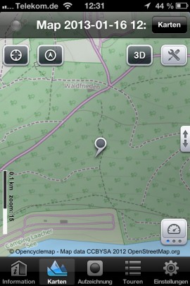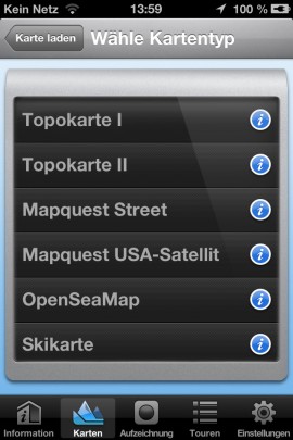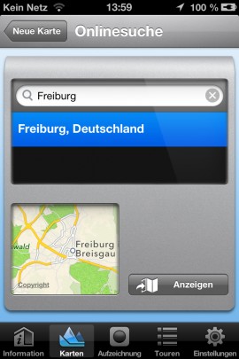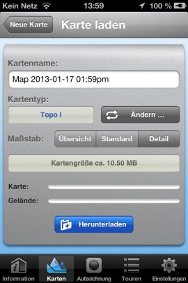 Der Download von mehreren Karten einer Region gleichzeitig ist leider nicht möglich. Wer also beispielsweise die Topo-Karte sowie die OSM-Karte von Wassenach laden möchte, muss den Download-Vorgang wiederholt durchführen. Auch für den Wechsel zwischen zwei Karten einer Region muss ein etwas umständlicher Weg über den Kartenmanager gegangen werden, wonach auch jedes Mal die Position des Zeigers auf der Karte neu gesetzt wird. Allerdings wird automatisch die Karte gewechselt, sobald man an einer Kartengrenze angelangt ist.