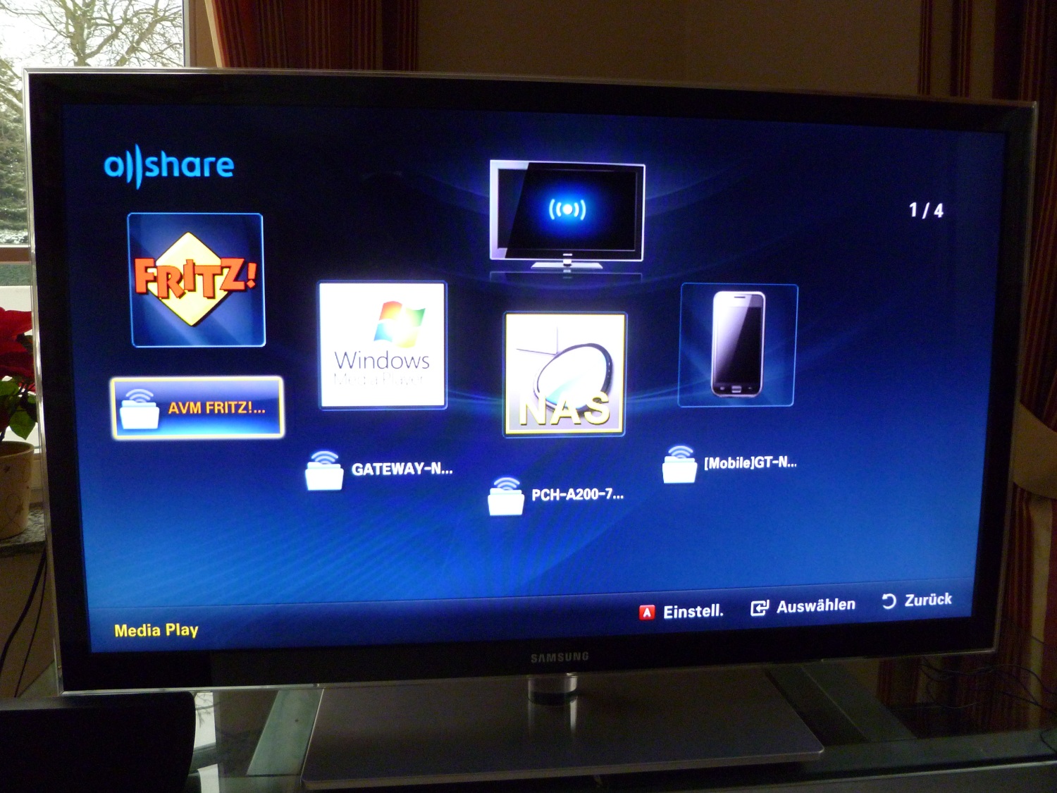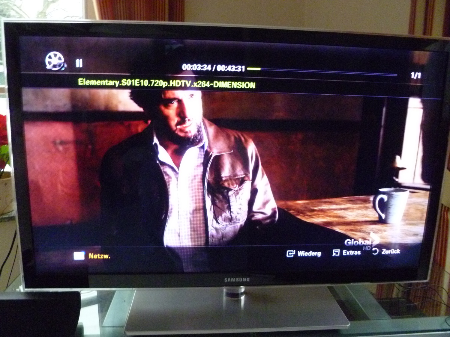 Die Wiedergabe von HD-Content per DLNA mit selbst gedrehten Videos ist kein Vergnügen, da häufig zwischengepuffert wird. Fremdes HD-Material (.mkv) dagegen wird ruckelfrei abgespielt (niedrigere Bitrate?). Wer drahtlos seine HD-Videos auf das TV-Gerät streamen möchte, sollte sicherheitshalber zum AllShare Cast Dongle EAD-T10EDEGSTD greifen (linke Abb.), den getgoods.de für knapp 55 EUR (momentan ausverkauft), Samsung selbst für heftige 90 EUR anbietet. Günstiger ist die drahtgebundene Übertragung per MHL/HDMI. Der elfpolige HDTV-Adapter EPL-3FHU (rechte Abb.) kostet etwas über 20 EUR einschl. Versand und muss im Gegensatz zu seinem Vorläufer für fünf Pins nicht extra mit Strom versorgt werden.