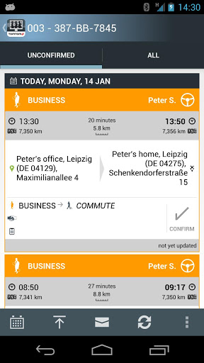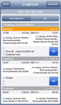 Zu jeder Fahrt können weitere Daten eingetragen werden, beispielsweise der Zweck oder die Kontaktdaten des Kunden. Die App lernt zudem und erkennt beispielsweise den morgendlichen Weg zur Arbeit und trägt die passenden Informationen automatisch ein. Angestellte lassen sich auch als Fahrer bestimmter Fahrzeuge festlegen, damit der Flottenmanager immer im Blick hat, wer mit welchem Fahrzeug zu einem bestimmten Zeitpunkt wohin gefahren ist.