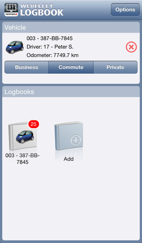 Beim Antritt der Fahrt wählt der Fahrer in der Logbook App aus den Optionen Privatfahrt, Dienstfahrt oder Arbeitsweg. Diese Information wird dann im Flottenmanagementsystem TomTom WEBFLEET hinterlegt und hilft bei der Erstellung von Protokollen zur Erfassung der Fahrleistung, die den steuerlichen Anforderungen entsprechen.