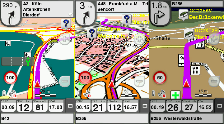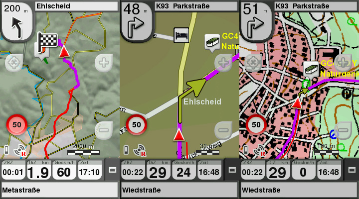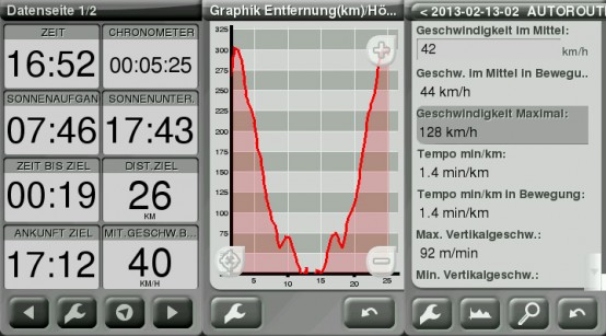 Somit stehen auch für die Navigation im Kfz-Modus alle Auswertungen zur Verfügung. Wie auch im Outdoor-Modus lassen sich extrem viele Funktionen und Ansichten über div. Einstellungen beeinflussen. Die Einstellungen gehen dabei weit über das hinaus, was man aus der klassischen PNA-Navigation gewohnt ist.