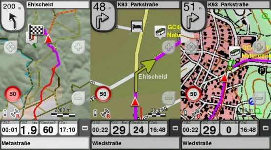 Letztendlich ist der Kfz-Modus bis auf die fehlende Sprachausgabe ein vollwertiges Kfz-Navigationssystem. Nach einer automatischen Navigation im Kfz-Modus an den Ort des Tourenstarts, kann durch einen Wechsel in den Outdoor-Modus nahtlos mit der Outdoor-Navigation begonnen werden.