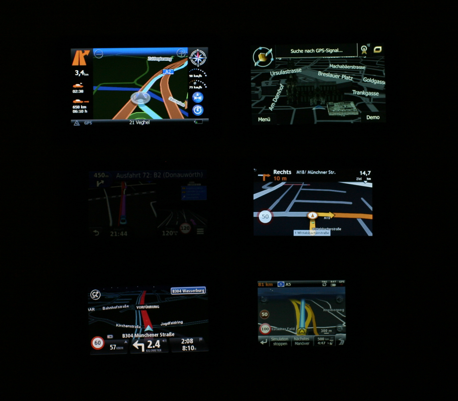 Von links oben nach rechts, nach unten: Arival, NavGear, Garmin, Mio, TomTom MEDION