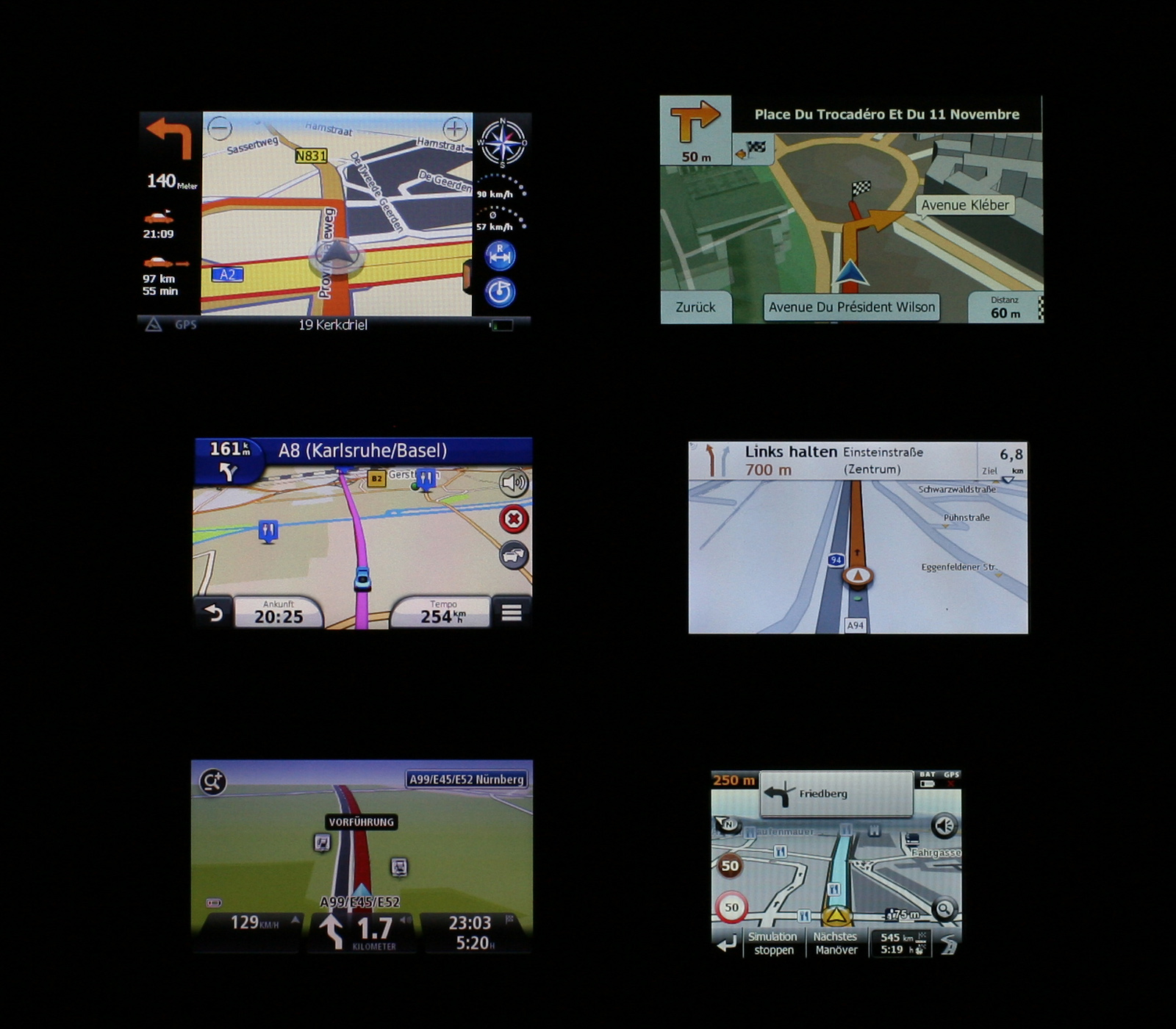 Von links nach rechts: NavGear, Arival, MEDION, Mio, Garmin, TomTom